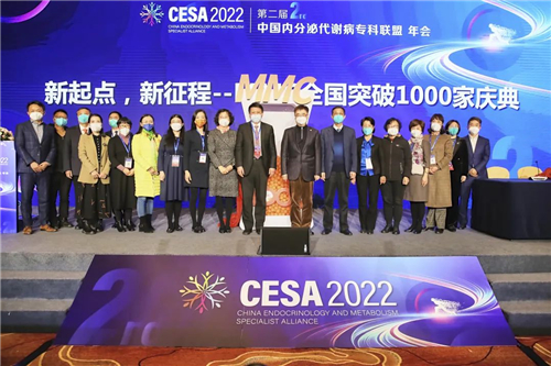 大會舉行了隆重的MMC突破1000家盛典,中國工程院范先群院士、中國工程院寧光院士、朱大龍教授、趙家軍教授、嚴勵院長、谷衛(wèi)教授,國家標準化代謝性疾病管理中心省級分中心代表:劉萍教授、秦映芬教授、單忠艷教授、鄭超教授、吳勝利教授、陳蕾教授、王育璠教授、杜建玲教授、勵麗教授上臺,優(yōu)秀分中心代表:鄭啟東教授、戴元成教授、董其娟教授、徐鳳梅教授、姜冉華教授、顧雪疆教授、唐榮教授、齊敬霄教授,上海智眾醫(yī)療科技有限公司 CEO李振杰先生,阿斯利康商業(yè)創(chuàng)新執(zhí)行總監(jiān)王健先生一同上臺參與1000家醫(yī)院的落地慶典。