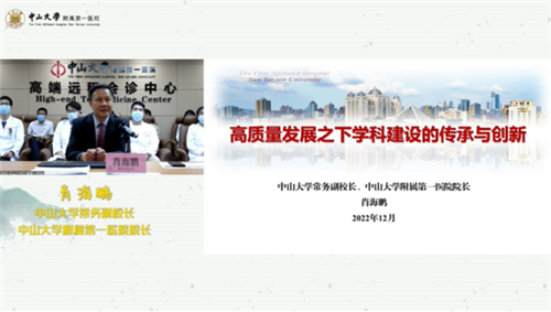 中山大學附屬第一醫(yī)院院長肖海鵬教授介紹了中山大學附屬第一醫(yī)院的醫(yī)院歷史沿革、學科發(fā)展概況、學科建設理念與格局創(chuàng)新的舉措和成果。學科的發(fā)展推動了醫(yī)學科技創(chuàng)新成果,包括全球首先研制出同源無機骨和人造骨應用于臨床、全球首例100%燒傷病人搶救成功、全球首例“無缺血”肝移植、腎移植和心臟移植以及一系列國內(nèi)首創(chuàng)技術。在學科高質(zhì)量發(fā)展方面,中山大學附屬第一醫(yī)院通過一、打造一體化創(chuàng)新平臺,凝練學科融合發(fā)展新方向;二、創(chuàng)新人才引培新模式,增添學科發(fā)展新動力;三、構建科學的數(shù)字化、多維度、分類別評價體系三大舉措,取得了累累成果。